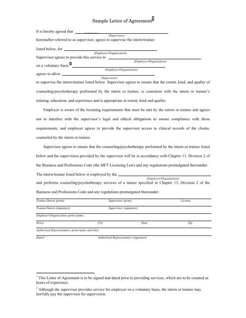 Sample Letter Of Agreement Camft